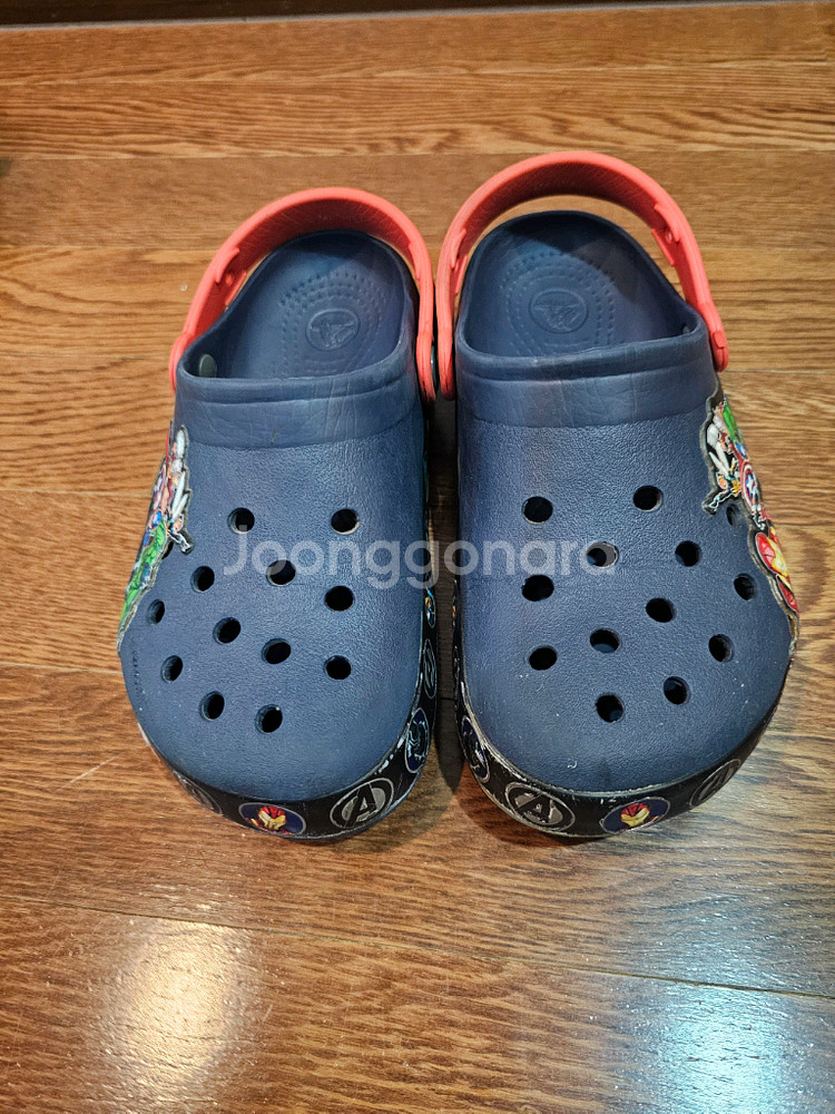 크록스 아동용 어벤져스 샌들 J3 사이즈입니다 220정도 됩니다 - 색상은 네이비와 레드 조합입니다 - 어벤져스 캐릭터 디자인이 돋보입니다 - 편안한 착용감으로 아이들이 활동하기 좋습니다