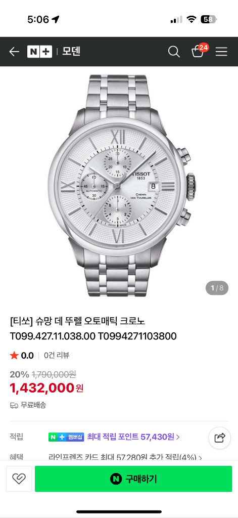 티쏘 슈망 데 뚜렐 오토매틱 크로노 시계 판매합니다 모델 번호는 T0994271103800입니다 풀박스로 구성되어 있습니다 - 48시간 파워리저브 기능이 있어 편리합니다 - 스크래치 방지 사파이어 크리스탈로 제작되어 시계의 내구성이 좋습니다 - 은색 메탈 시계로, 어떤 스타일에도 잘 어울립니다 - 보증서, 케이스, 여분 코 있습니다 거의 차지 않아서 생활기스 약간 있는 정도구요 주기적으로 와인딩 해줬습니다