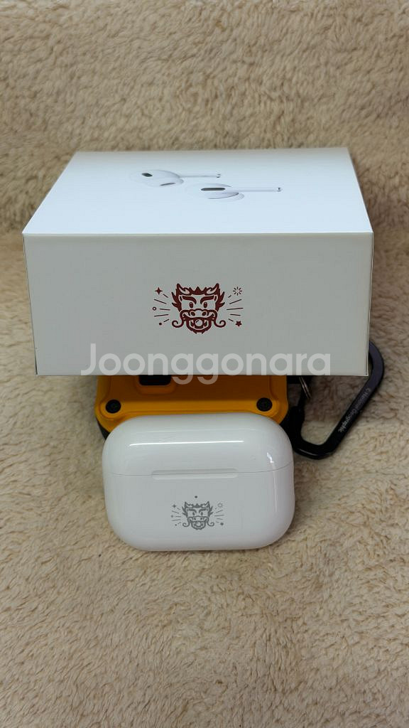 에어팟 프로 2세대 C타입으로 된 특별한 디자인의 로고가 새겨진 한정판 제품입니다. 박스 및 구성품 모두 있으며 구성품(애플 정품 케이블, 이어팁 3종)은 미사용입니다. 이어폰은 실사용에 의한 생활기스가 있으므로 구입에 참고하시기 바랍니다. 직거래는 지하철 역 이수역에서 가능하며 우편거래시 배송비는 제가 부담하겠습니다.