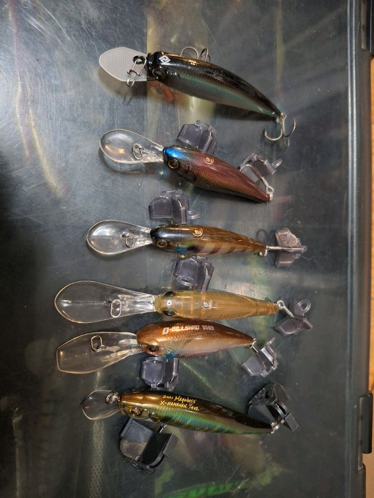 1. 피네스 하드베이트 세트 (6개 일괄 7만 원) 실사용 횟수 적고 바디와 훅 상태 모두 훌륭한 '알짜배기' 피네스 루어 조합입니다. 메가배스 X-NANAHAN (나나한): * 사토 신지 프로가 감수한 최상급 저크베이트입니다. 75mm 사이즈 대비 압도적인 비거리와 화려한 다팅 액션으로 저수온기 및 프레셔가 높은 필드에서 필수 아이템입니다. 자칼 소울쉐드 (Soul Shad): * 설명이 필요 없는 섀드계의 교과서입니다. 고속 리트리브에서도 액션이 깨지지 않는 안정감이 일품이며, 리액션 바이트를 유도하는 능력이 매우 탁월합니다. 자칼 디빌쉐드 (D-Bill Shad): * 독특한 립 구조 덕분에 장애물 회피 능력이 매우 뛰어납니다. 하드한 바닥이나 구조물 근처에서도 밑걸림 걱정을 덜고 공격적인 운용이 가능한 섀드입니다. 레이드재팬 쉐드스프린트 (Shad Sprint): * 레이드재팬 특유의 정교함이 돋보이는 제품입니다. 하이피치 타이트 액션으로 예민해진 배스의 입질을 짜내야 하는 상황에서 강력한 위력을 발휘합니다. 상태 요약: 훅 무딤 없고 바디 도장 까짐 거의 없는 A급 컨디션입니다. 시즌 준비하시는 분들께 강력 추천드리는 조합입니다. 2. 파요 하드베이트 + 라인 세트 (일괄 3.3만 원) 가성비 좋은 파요 하드베이트들과 미사용라인 일괄입니다. 택배거래: 안전거래 가능 (수수료 구매자 부담 시)