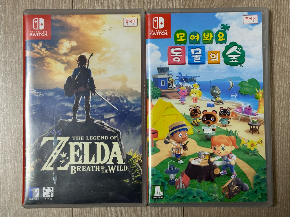 닌텐도 스위치 젤다의 전설 야생의 숨결과 모여봐요 동물의 숲 칩입니다. 둘 다 한국어 지원합니다. 칩 상태는 사진과 동일합니다. 젤다 야숨 5.0 모동숲 4.7 일반택배 3800 반택 2000