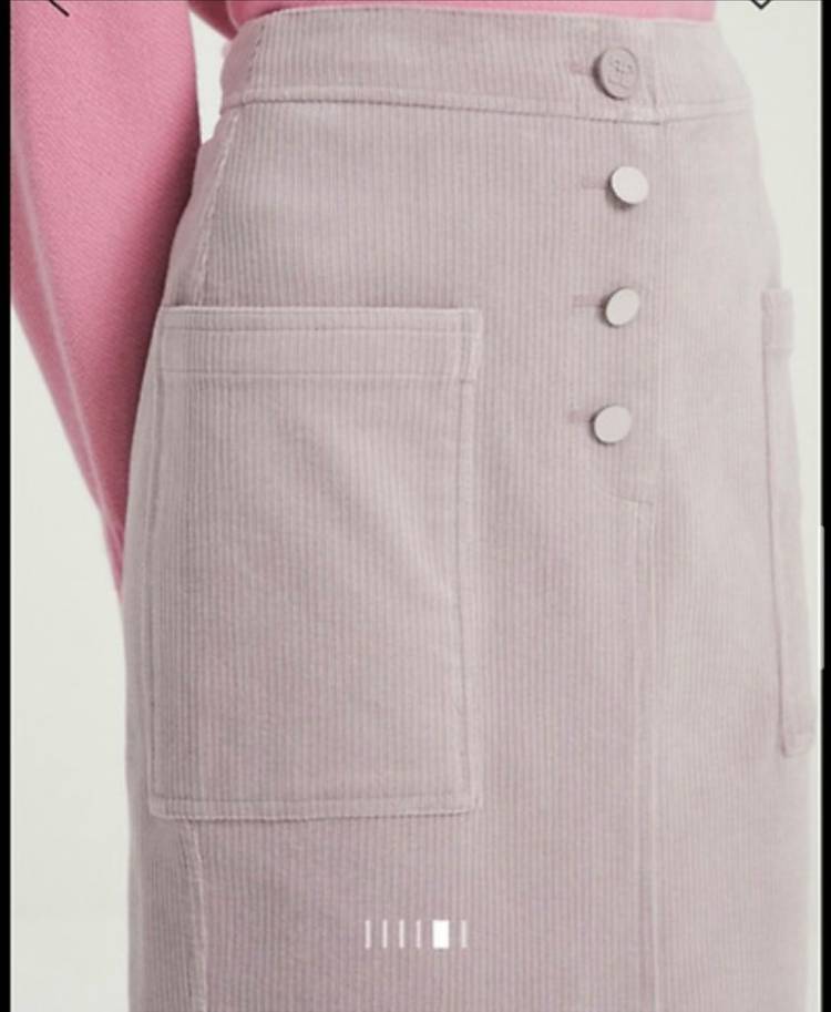 타임 라일락 컬러, 44사이즈(여유있음) 연보라색 코듀로이 스커트입니다. 은은한 밝은색감이라 봄에 입으면 아주 예쁠거에요 톤다운된 세련된 라일락 색깔이라서 네이비, 그레이, 블랙, 브라운, 베이지, 아이보리, 블루 등등 매치하기 정말 편하고 아무옷에나 척척 어울려요 롱 기장 이지만 신축성이 매우 좋은 원단이고 앞/뒤트임이 있어 활동하기 편합니다 코듀로이 소재라 스타일리쉬해보이고 따뜻해서 봄가을,겨울까지 착용 가능해요 아무래도 코듀로이라 엉덩이 부분 눌린 자국이나 허리 옷걸이 자국 등 착용감 있어요. 비싼옷이라도 코듀로이는 소재 특성상 어쩔수 없는것 같아요. 저렴 판매 합니다 예민하신 분은 패스하세요 - 교환환불 불가 동일제품 최저가 입니다. 저렴하게 구매하세요