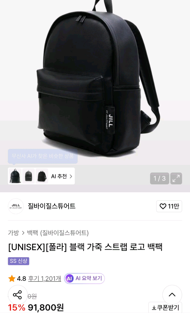 질바이질스튜어트 블랙 가죽 스트랩로고 백팩 가방