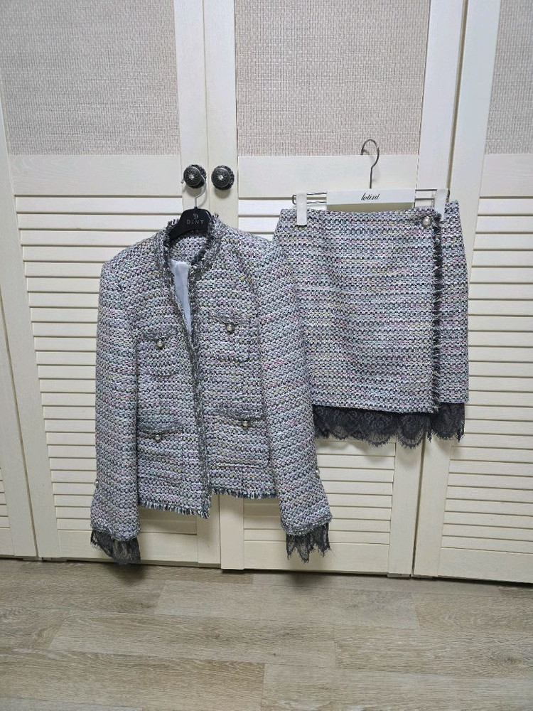 JS뉴욕 트위드 세트 고급스러운 JS뉴욕 트위드 셋업입니다. 자켓과 스커트 밑단에 레이스 디테일이 있어 여성스러움을 더했습니다. 격식 있는 자리나 데이트룩으로도 손색없을 것 같아요. 비싸게 주고 구입해서 몇번 안입어 상태 좋아요. 8사이즈 - 55,66 세트가격 : 35000원 배송비 : 3500원