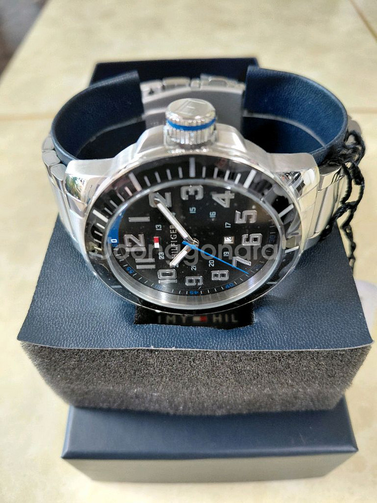 개인정보(거래정보)를 주고받는 행위는 사기에 노출될 수 있으므로 즉시 중고나라로 신고해 주세요정품 남성 시계로 박스와 태그가 모두 포함되어 있어요. 스테인리스 스틸 케이스와 블랙 다이얼에 블루 포인트가 들어간 깔끔한 디자인이에요. 상태 양호하고 실용적인 시계입니다.