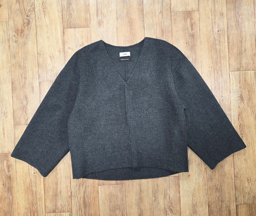 오르(ORR) V넥 프리미엄 울 탑 프리사이즈 새상품 반품 58 기장 60-66 그레이칼라에 V넥 프리미엄 울 탑입니다 사이즈는 S이나 루즈핏이라 프리사이즈로 보심되요 가격은 95000원입니다 반품불가/착불