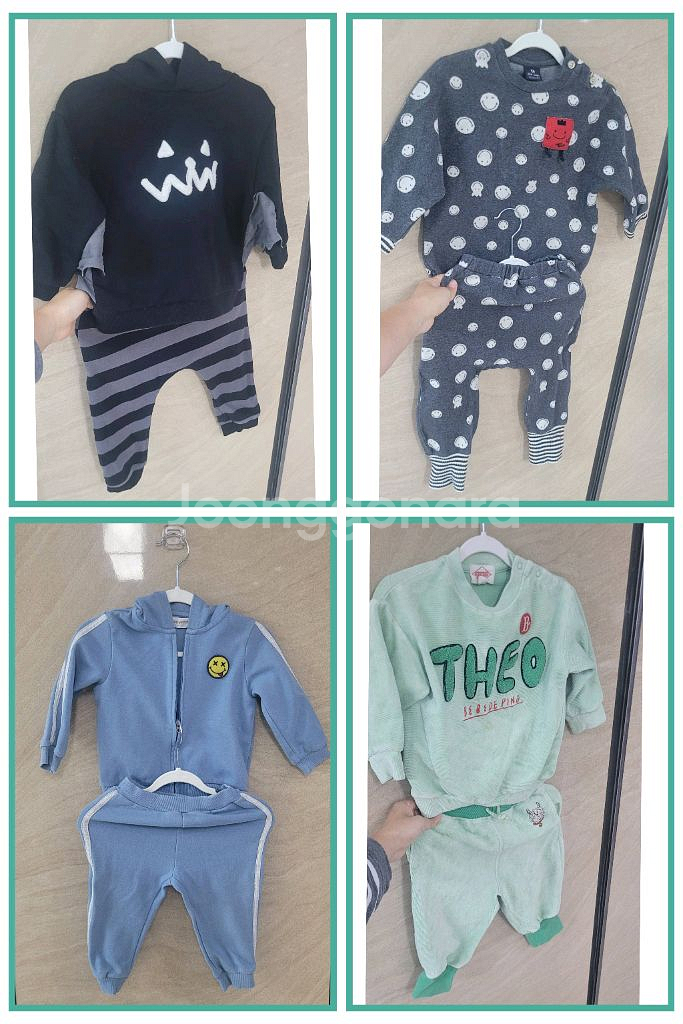 일괄 4벌 상하복 세트 판매하겠습니다 다 브랜드 있는거라서 소재 좋아요 100사이즈 라고 써있는것들은 다 시보리가 있어서 90입을때도 넉넉히 입혔어요 디자인이 다 달라서 요일별로 입혀도 되고 좋아요ㅡ박쥐 모양 상하복은 많이 못입혀서 사용감도 없고 좋고 베베드피노는 배쪽 이염 살짝 있어요 확대하시면 보이실거예요 다른거는 다 이염 없어요 일반택배 3800 반값택배 2700 교환,환불 안되니 고민하시고 연락 주세요 먼저 사시는 분이 임자