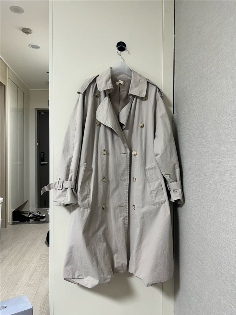 라룸에서 20만 가까이 주고 구매, 프리사이즈 키가 작아서 백화점에서 총장 수선했어요 수선 후 총장은 103cm입니다 단추, 버클 디테일 전부 신경써서 고른 제품입니다 색상도 그레이와 베이지 섞인 색상이라 고급스러워요! 안 어울려 몇 번 입지 않아 상태 아주 깨끗하고 좋으며 네고는 불가해요!