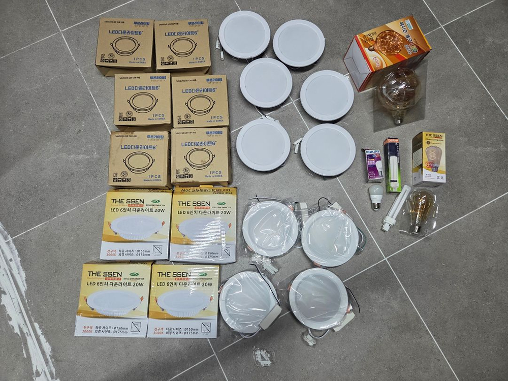 개인정보(거래정보)를 주고받는 행위는 사기에 노출될 수 있으므로 즉시 중고나라로 신고해 주세요LED 다운라이트 6인치 20w 4개 에디슨4w, 필립스3w, 오스람26w는 서비스로 드려요 새거 몽땅 경남 창원, 원주 직거래 가능 일반택배(3600원)도 가능합니다