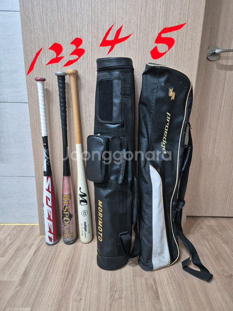 1. 이스턴 스텔스 투피스 알로이배트 32-29 반발력 살 벌합니다. 8만 2. TPX 04리스판스 리오더 원피스 알로이배트 33-28 구형명기로 제일 유명한 배트입니다. 발란스및 반발력 아주좋습니다. 15만 3. 슬러거 나무배트로 33.5인치 930그램 대학리그경 기 인증배트로 대학리그도 사용가능합니다. 사용감 많 이 없어서 상태좋습니다. 6만 4. 모리모토 배트가방 -판매완료- 5. 사사키 프로엣지 최고등급 배트가방이며 교차시 5자루까지 충분히 들어갑니다. 사용감은 있습니다. 3만(배송비별도) 직거래는 부천 안양 시흥에서 가능합니다