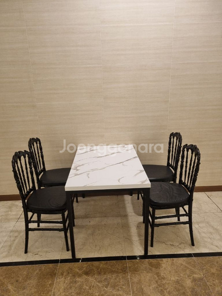 테이블1개 의자4개 세트당 10만 원 블랙, 피플투명 각 50세트 보유중 플라스틱 제질이나 아크릴 느낌으로 무게감 있어요. 구내식당 한식뷔페 연회장 웨딩홀 장례식장 매장 등등 어디서나 사용이 가능해요 직거래시 경기도 안산시 화정동에 물품 보관중 입니다. 용달거래 선호합니다
