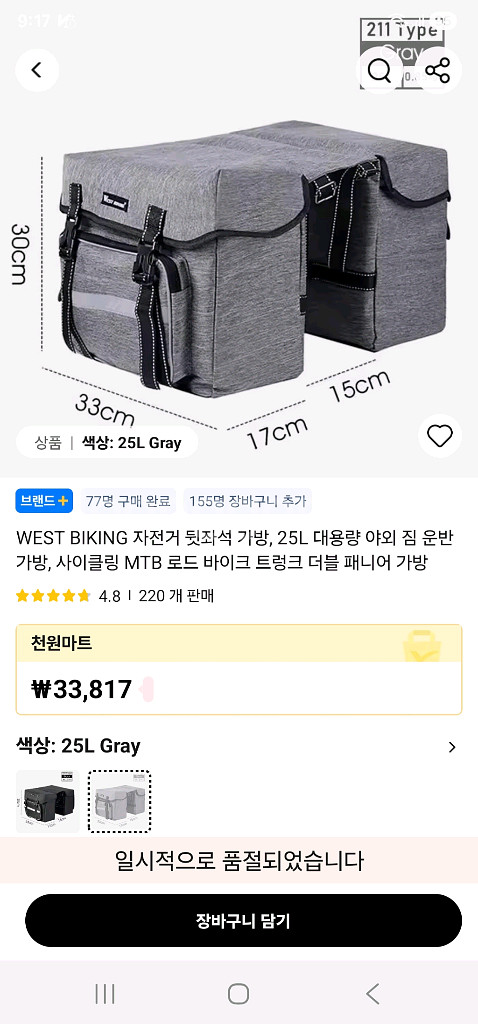 *** 제품1 설명 *** 방금 AliExpress에서 찾은 상품이에요: WEST BIKING 자전거 뒷좌석 가방, 25L 대용량 야외 짐 운반 가방, 사이클링 MTB 로드 바이크 트렁크 더블 패니어 가방 https://a.aliexpress.com/_c3r9wt9l *** 제품2 설명 *** 방금 AliExpress에서 찾은 상품이에요: 서쪽 자전거 자전거 후면 랙 가방 15-20L 대용량 MTB 도로 자전거 여행 수하물 보관 가방 트렁크 파니에 숄더 핸드백 https://a.aliexpress.com/_c3m2peQb 자전거 패니어 가방 2개. 직거래로 일괄 2만원에 판매합니다. 지인들과 자전거 여행 가려고 준비 했다가 한분이 취소해 달라고 하여서 반품 시기 놓쳐서 싼 가격에 날립니다. 가방에 대한 설명은 위에 알리 사이트 참고하세요. 응육이칠공공삼팔팔