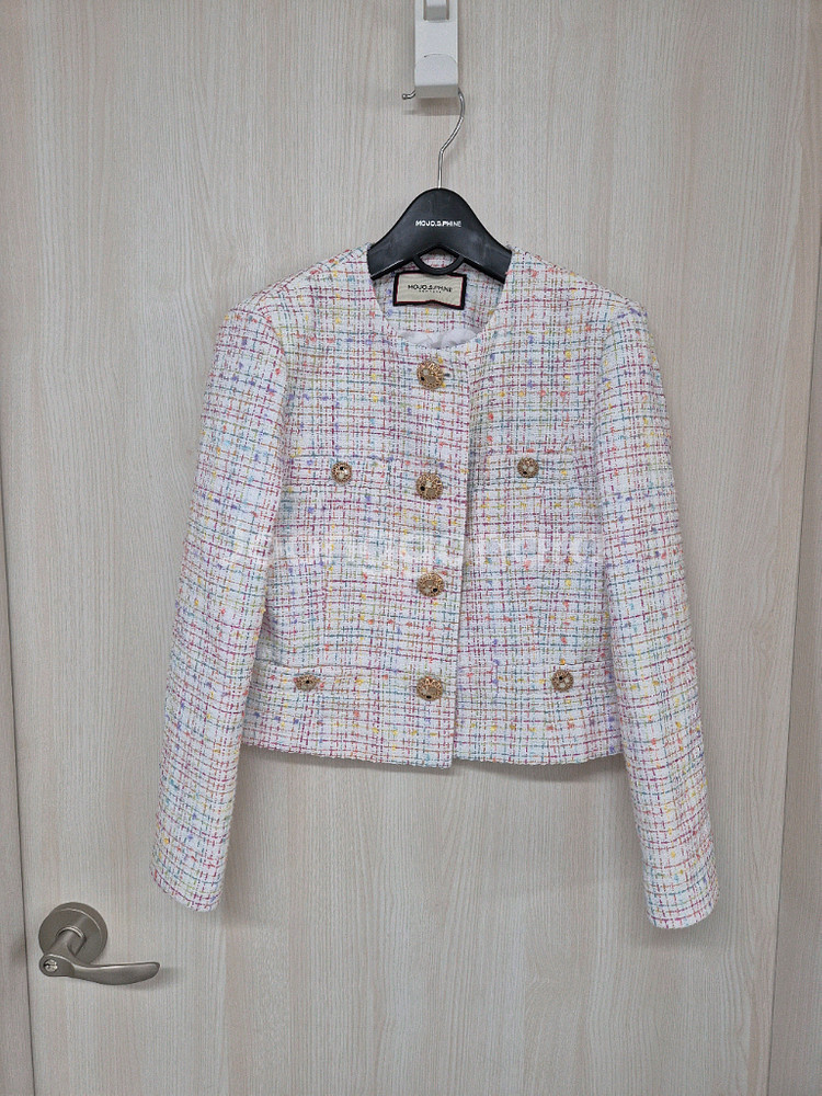 모조에스핀 파스텔체크 트위드 자켓 표기사이즈는 77이나 66까지만 가능 55인 저에게도 잘 맞음 화사한 색감의 체크 패턴 봄자켓으로 좋은 가벼운 두께감 집에서만 시착