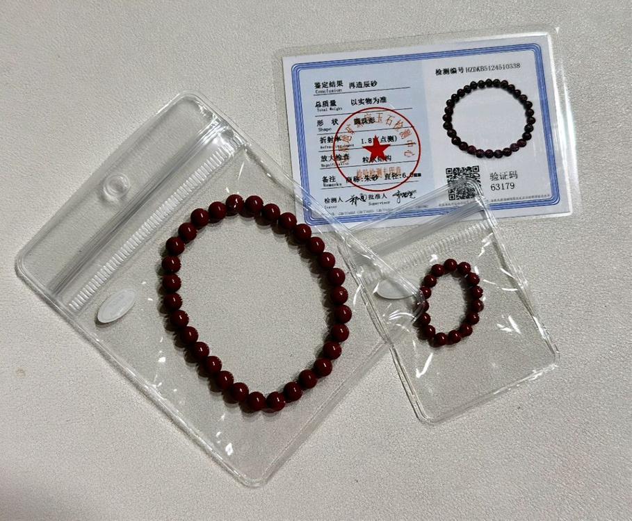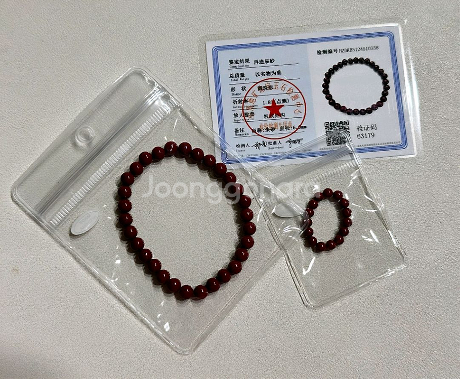 경면주사팔찌 +반지세트 6mm 95프로 천연석 경면주사팔찌 +반지 세트로 판매합니다 경면주사는 거의 중국에서 생산되며 중국 최고 원석 감정사가 감정하는 인증서도 포함입니다 경면주사는 액운을 막고 소망을 이뤄주며 건강증진과 평화를 가져다 준다고 합니다 마감도 깔끔하고 튼튼한 팔찌 저렴하게 판매할게요