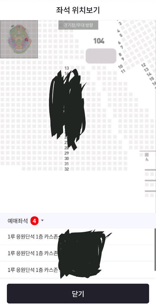 1루 응원단석 카스존 104블럭 좌통 통로 앞뒤 2연석 장당 15 1루 응원단석 카스존 105블럭 우통 2연석 완료 채팅주세요~ 선물하기로 바로보내드립니다
