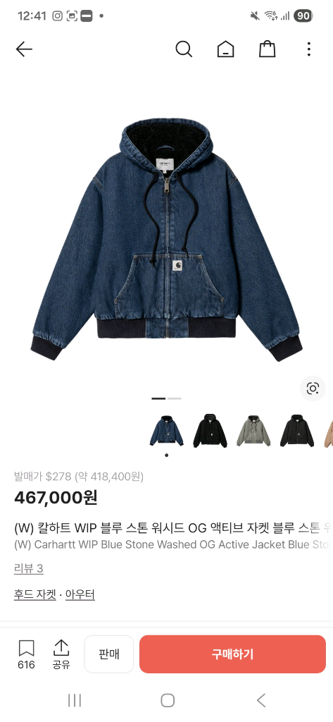 칼하트윕 데님 액티브자켓 m