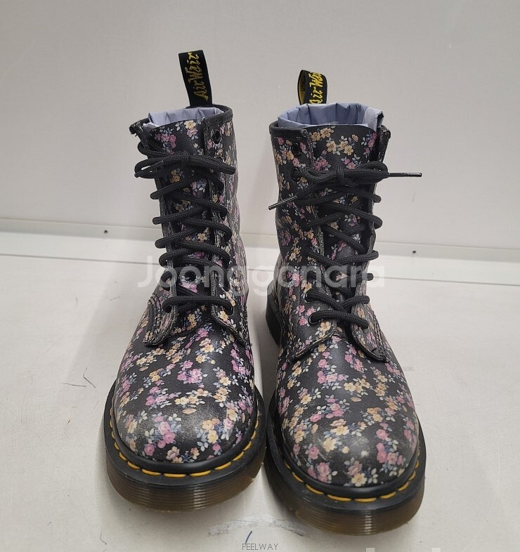 닥터마틴(Dr. Martens)의 대표적인 8홀 워커 모델인 1460 플로랄(Floral) 또는 파스칼 미니 타이디(Pascal Mini Tydee) 부츠입니다. 블랙 가죽 바탕에 빈티지한 무드의 꽃무늬 패턴이 전체적으로 프린팅된 디자인으로, 일반 닥터마틴 가죽보다 얇고 부드러운 소재가 특징입니다. 제품 정보 및 특징 모델명: 닥터마틴 1460 플로랄 8홀 워커 (Dr. Martens 1460 Floral) 디자인: 핑크, 크림색 등의 작은 꽃들이 촘촘하게 박힌 플라워 패턴이 적용되었습니다. 상세 디테일: 닥터마틴 특유의 노란색 스티치와 8개의 아이렛(신발끈 구멍), 'AirWair' 로고가 새겨진 뒤축 고리가 포함되어 있습니다 사이즈 240 최저가에판매합니다 - 구매후 바로 사용하시면 되겠습니다! - 사이즈 보시구요. 확대 이미지 보세요.. ▣ 컴퓨터의 환경과 모니터의사양에 따라 색상이 약간씩 달라질수 있답니다. ----이점 참고 하세요 -------- ****상품 중고명품매장위탁제품입니다 위탁대행 특성상 반품은 불가입니다