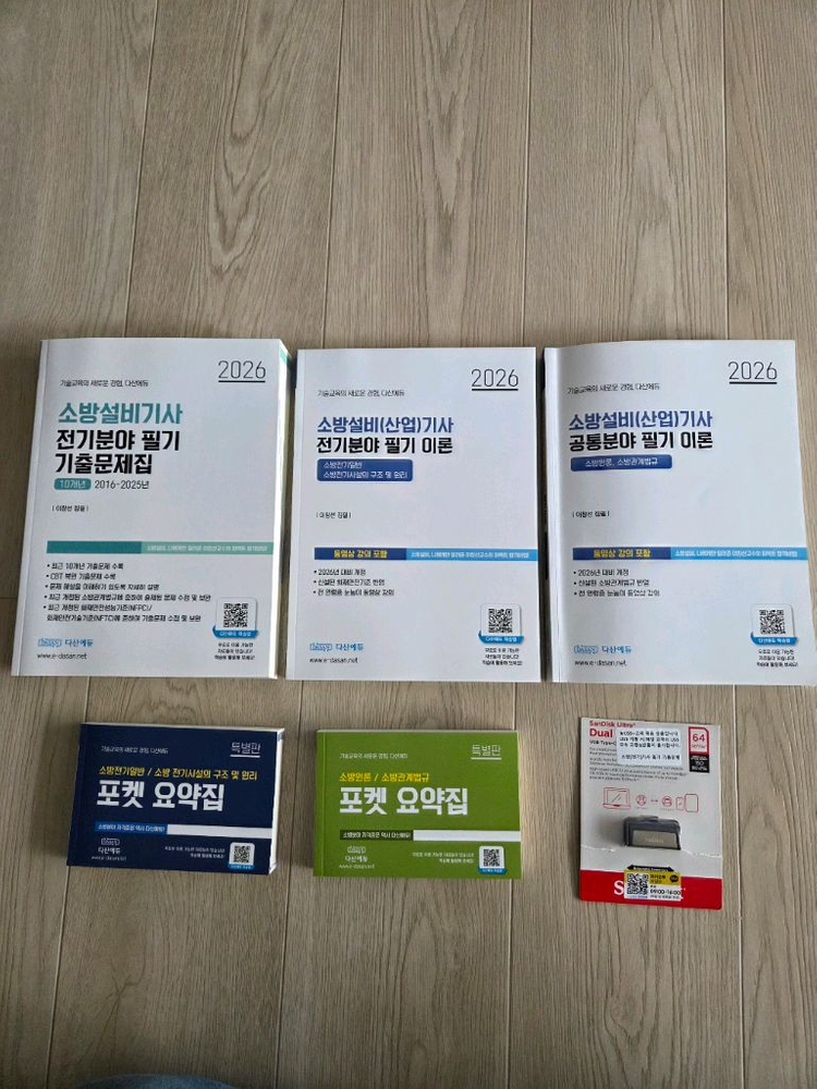 다산에듀 소방설비(산업)기사 2026년 대비 필기 이론서, 기출문제집, 포켓 요약집, 그리고 64GB USB 세트입니다 - 이창선 집필 - USB에는 기출문제 강의가 들어있습니다 - 최근 개정된 소방관계법규 반영 * 앞의 4페이지만 긇쓴 흔적 있으며 나머지 부분과 다른 책은 모두 깨끗한 상태입니다. 205000원에 구입하였으며 직거래는 송도 풍림아이원 1단지입니다.
