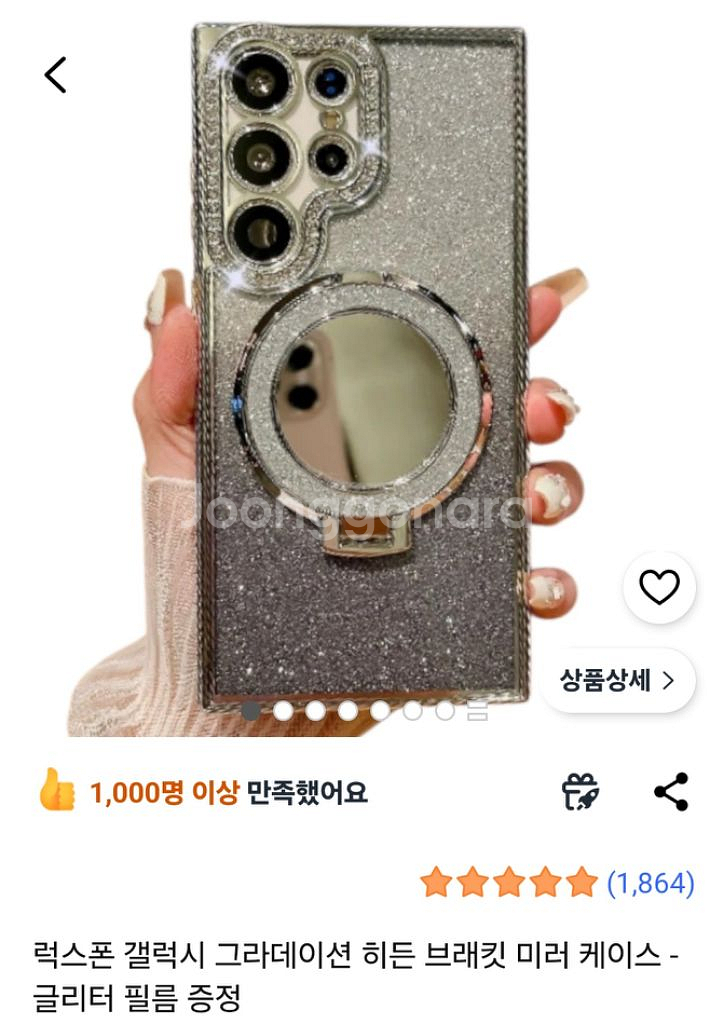 실사용없는 새제품급(노박스) 가로 세로 스탠딩 지원 탈부착 가능한 그라데이션 글리터 필름 빛 각도에 따라 다른 분위기 연출 미러 맥세이프 링
