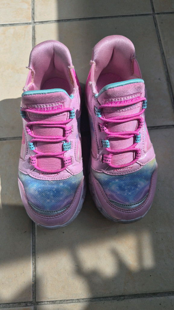 아동용 운동화예요. 핑크와 퍼플 컬러가 예쁘고 상태도 양호한 편입니다. 225 사이즈로 활동적인 아이들에게 딱 맞을 것 같아요!