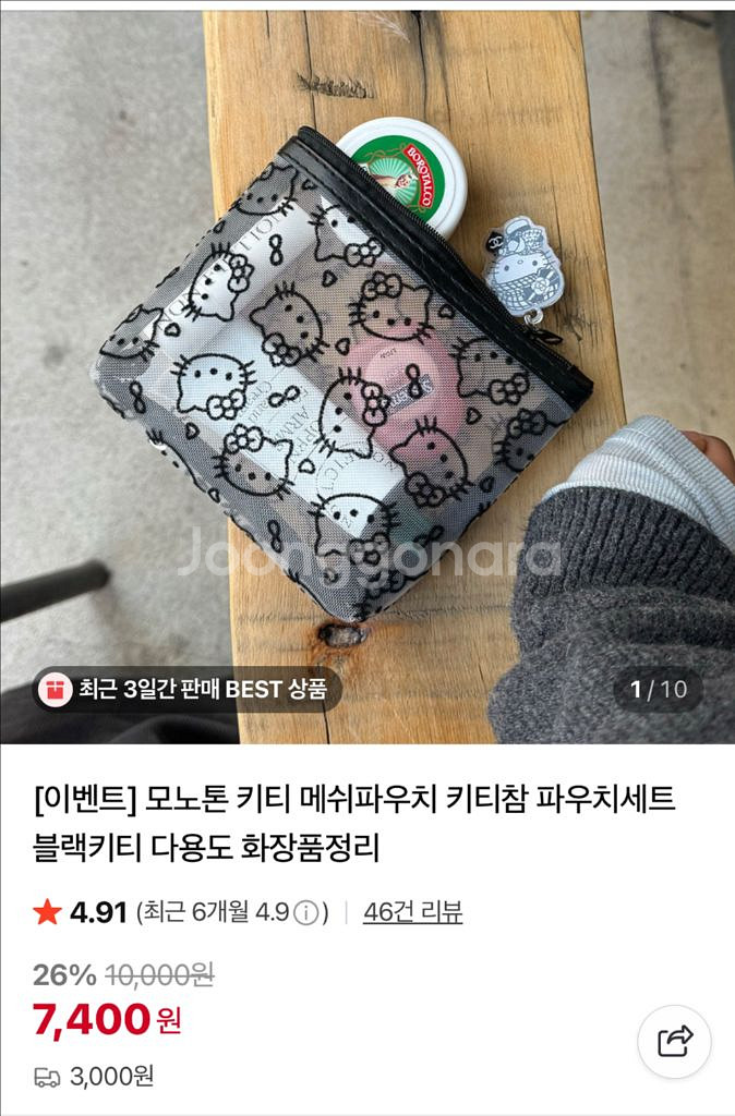 키티 메쉬 파우치 화이트/블랙 1개