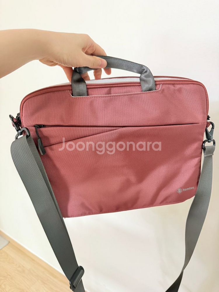 탐탁 노트북 가방 갤러리아 타임월드에서 10만원주고 구매했는데, 한번도 안메고 다녔어요! 개봉되어있는 새상품이에요 수납도 좋고, 슬림한데 내부는 벨벳이라서 보호도 잘될거 같아요! 여행캐리어에 꽂아서 사용할수 있고. 크로스백도 가능해요 토트로 들땐 안쪽 손잡이 꺼내서 들면되요! 그냥 새상품 인디핑크에 어깨끈은 회색이라 예뻐요! 크기는 가로 34cm 세로 26cm 되네요 가격네고 없음 비대면거래, 환불불가