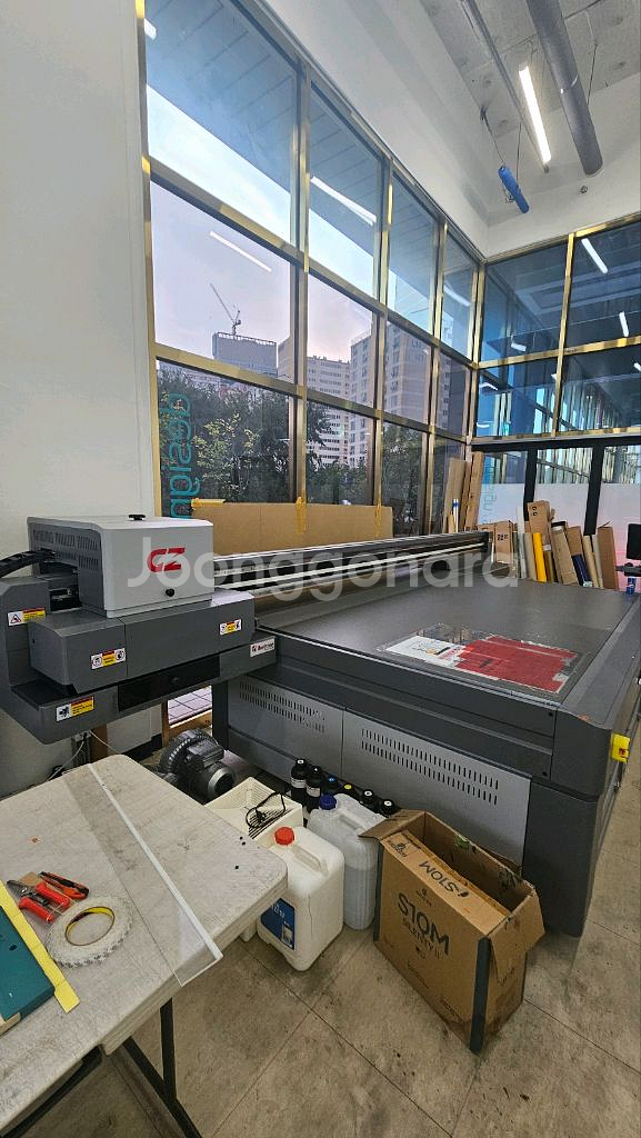 UV 평판프린터 23년 6월 구입 고퀄리트 해상도 최상표현 4*8사이즈 UV 프린팅 작업에 적합한 장비 백색+4원색 2023년 6월 구입한 OZ 평판장비 SMART-2513H UV 프린터입니다 Ricoh Gen6 프린트 헤드를 사용하며, 최대 인쇄 사이즈는 2500*1300mm입니다 아크릴, 알루미늄, 폼보드, PVC, 세라믹 등 다양한 소재에 출력 가능하며, UV 잉크를 사용합니다 외형 사이즈는 4452*2040*1495mm이고, 장비 무게는 1,200kg입니다 사진에서 보시는 바와 같이 전반적으로 깨끗하게 관리되었습니다 기타문의01094119567