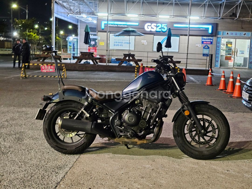혼다 레블 500 판매합니다. 2020년식,18,7@@km이고 튜닝내역으로 시시바,브라운시트,핸들라이저 1단업,라이트/깜빡이 가드,물통거치대 좌측 사이드백,시거잭,볼마운트,vysy 블랙박스 있습니다. 타이어 70~80%정도 남아있고,엔진오일 18,000초반에 교체했습니다. 체인 텐셔너 늘려서 타고있지만, 구매하시면 교체하셔야 할듯합니다. 폐지해둔 상태라 구매하시면 서류 넘겨드리겠습니다.