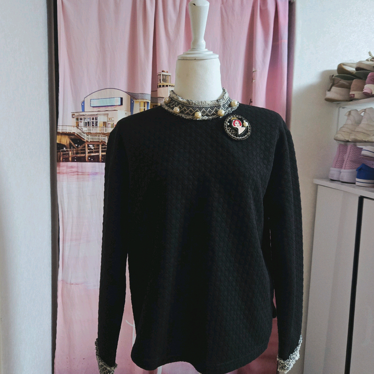 에고이스트 예쁜 티예요 전체적으로 엠보 무늬 들어가 있구요 넥 소매 라인과 패치 포인트가 예뻐요 새것같은 상태예요 10만원 대에 구매했구요 저렴하게 올려요 반택 2100원 일반택배 3500원 추가