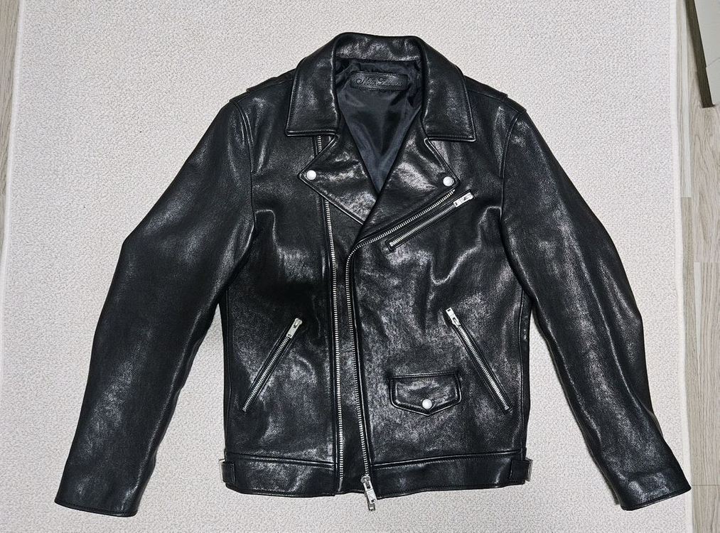 [타 플랫폼 동시 판매중] 가죽 맛집 전문 브랜드인 느와르라르메스 램스킨 라이더 가죽자켓입니다. 더블 라이더 디자인으로, 은색 지퍼 디테일이 돋보입니다. 너무 디테일이 많은 더블라이더는 코디 범용성도 떨어지고 부담이 가지만 이 모델은 부담없이 입을수 있게 제작되어서 미니멀하게 입기 편합니다. 타 브랜드 램스킨보단 독자적으로 개발하여 공급 받는 이태리 휴고 램스킨이라 부드러운면서도 묵직하고 광택감이 고급지게 살아있습니다. . 몇번 안입어서 사진처럼 상태 깔끔합니다 술 금연 동물 안합니다 100 사이즈 입으시는분들이 잘맞을것같습니다.
