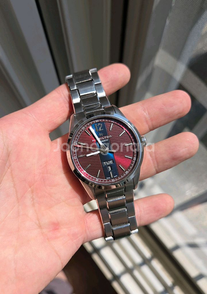 해밀턴 브로드웨이 버건디판 모델입니다. 현재는 단종된 모델로 희소성 있는 시계입니다. 오버홀, 폴리싱 이력 없습니다. 2019년식이지만 지금까지도 일오차 준수하여, 오버홀 맡기지 않아도 될듯 합니다. (어차피 해밀턴은 오버홀 시 무브먼트를 새걸로 통교체 해주기 때문에, 더 오랫동안 쓰다가 오버홀 맡겨도 상관없습니다) 사진에서 보시다시피, 조심히 착용하였기 때문에 생활기스 외에는 하자 없습니다. 모든 박스 및 보증서, 구성품 전부 다 있습니다. 리테일가 172만원인 모델이지만, 연식을 감안하여 71만원에 올립니다. 단종될 모델이라 나름 소장 가치가 있다고 생각합니다. 직거래는 광주광역시에서 진행합니다. 구매 의사 있으신분 연락 주세요~