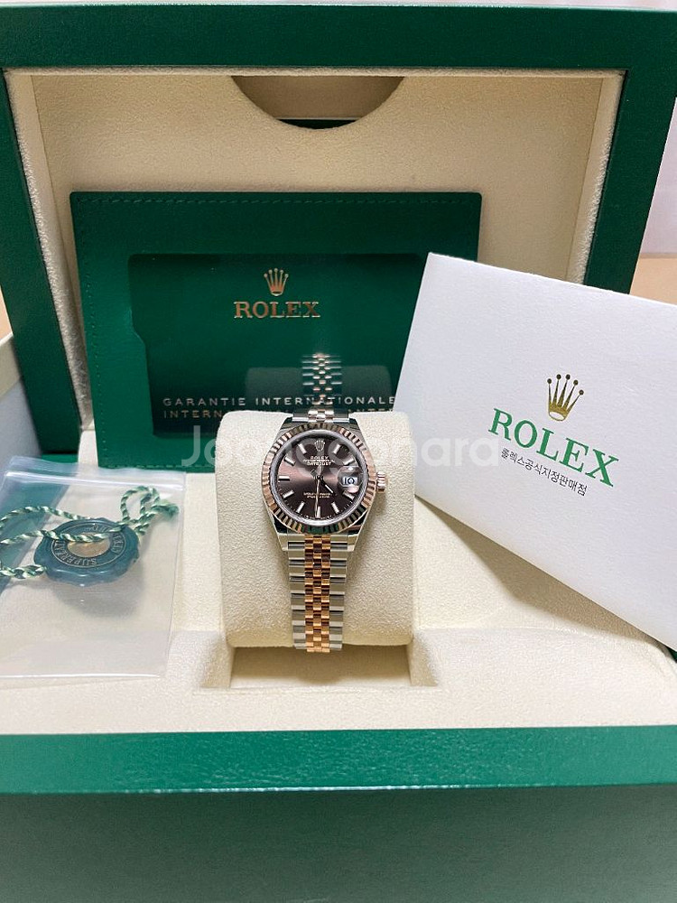 0. 모델번호 : 279171 1. 모델명 : 로렉스 데이저스트 28 초코판 로골콤비 2. 스템핑일자 : 2022-09 (년-월) 3. 리테일가 : 1861 (현 해당연도 백화점가) 4. 판매가격 : 1950 (ex. 12000)(만원단위 최종가격) 5. 구성품 : 국내 풀세트 6. 시계상태 : 10점 7. 하고 싶으신 말 : 반갑습니다! 여성용 제일 인기 모델입니다. 62일칠 70삼오 문자가 회신이 빠릅니다.