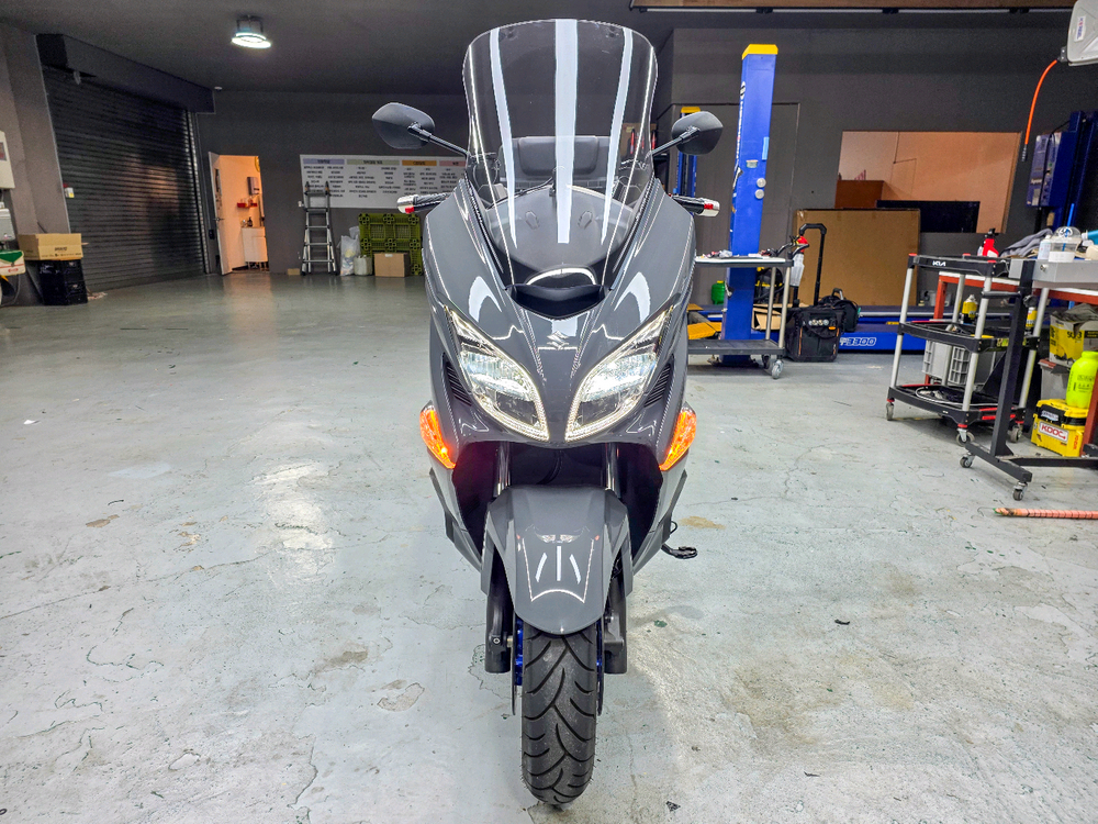 1. 차종 : 스즈키 버그만400쿠페(AN400A) 2. 제작년식 : 2022년(TCS, 이지스타트 적용모델) 3. 색상 : 그래이 4. 최초등록일 : 2022년 9월 23일 5. 적산거리 : 2740km 6. 사고유무 : 2대 차주로 전차주 좌,우 꿍 7. 판매지역 : 부산 정관 (폐지로 인한 지인 샵에 보관중) 8. 추가옵션 : 순정 롱 윈드스크린, XRT 레버, 이노브 K3 블랙박스 2채널(와이파이 앱 연동), 하디탑박스 42리터(풀페이스 2개 수납가능), 디젤 C타입 고속충전기, 대구공돌 핸들발란스 9. 26년 정비내역 : 2월 순정 에어크리너(필터) 및 맥스알피엠 인산철배터리(보증서 포함) 교체 10. 특이사항 : 25년 9월23일 환경검사는 하였으나, 폐지로 인해 등록시 사용검사 하셔야 됩니다.(보험 승계용으로 폐지) 환경검사 당일 엔진오일 교체 하였으며, 현재 기름게이지(사진)처럼 고급유 가득 채워져 있습니다. 오셔서 등록 후 타시면 됩니다..(등록서류 3장 구비) 미사용 순정키 보유(2개), 탑박스키(2개) 있습니다. 전차주 꿍으로 인해 우측언더카울 스크레치 보기 싫어서(3/22일)일본에서 부속 받았습니다.