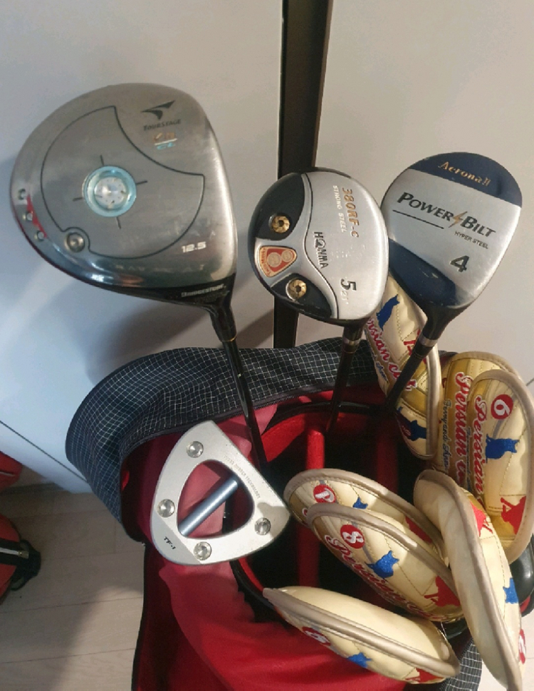 구성품 미즈노 제퍼 LG185 아이언 (5,6,7,8,9,S,P) 브리지스톤 TF-1 퍼터 브리지스톤 투어스테이지 드라이버 혼마(Honma) 페어웨이 우드 380RF-C 5번 파워빌트(Power Bilt) 페어웨이 우드 4번 아다바트 (Adabat) 바퀴 골프백 골프채는 모두 플렉스 L 입니다 사용감 조금외 상태 양호합니다 커버도 혼마우드만 빼고 다있습니다 바퀴골프백은 거의 새제품 수준입니다 그립 상태도 모두 좋습니다👍 비싸게 주고 구입했는데 싸게 팝니다 구입 원하시면 연락주세요 먼저 오시는분께 판매하겠습니다 ✨️✨️✨️ 직거래만 가능하구요 직거래는 인천 시민공원역쪽에서 가능합니다