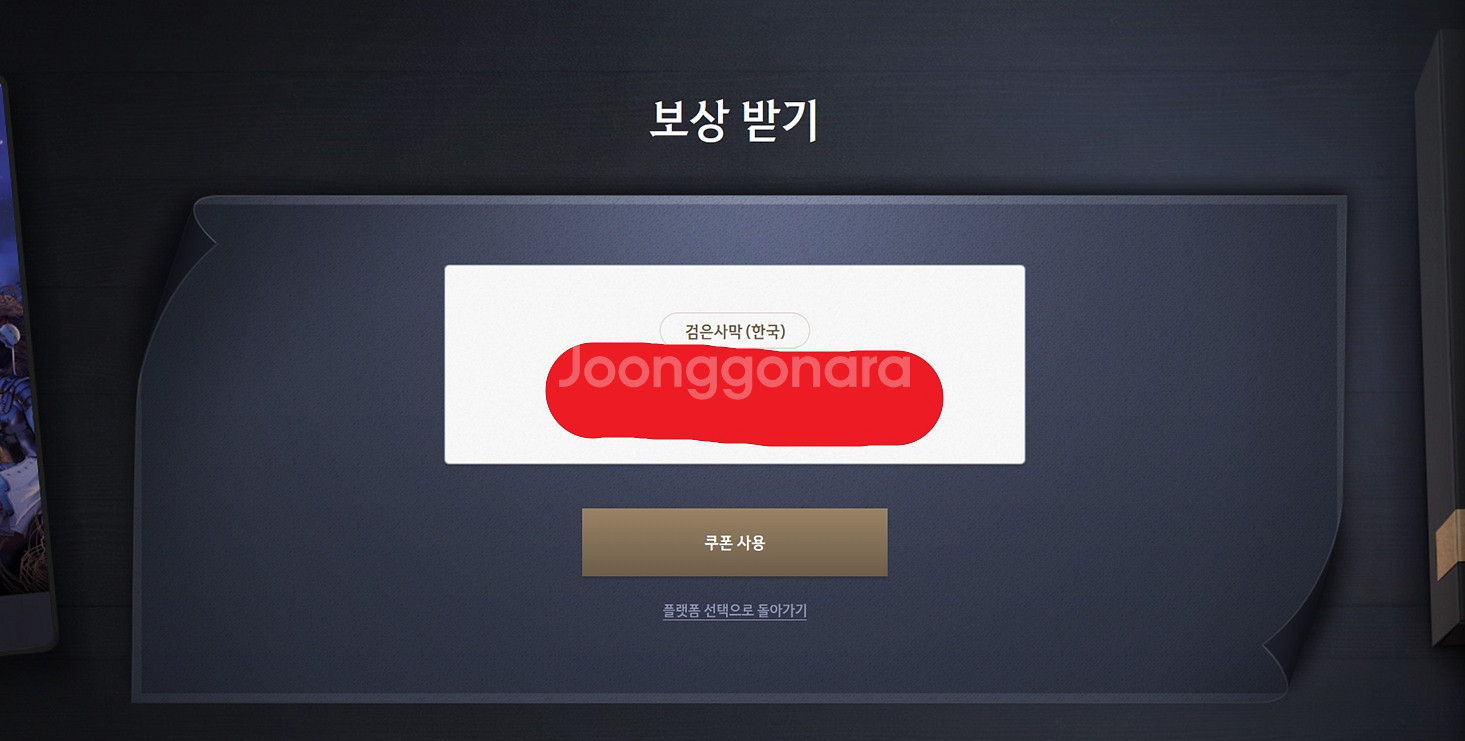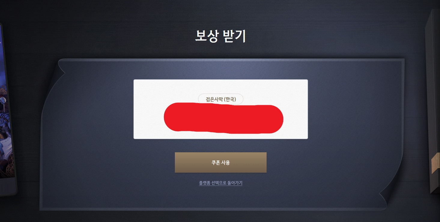 붉은 사막 예약구매 후 받은 검은사막 쿠폰 합니다.