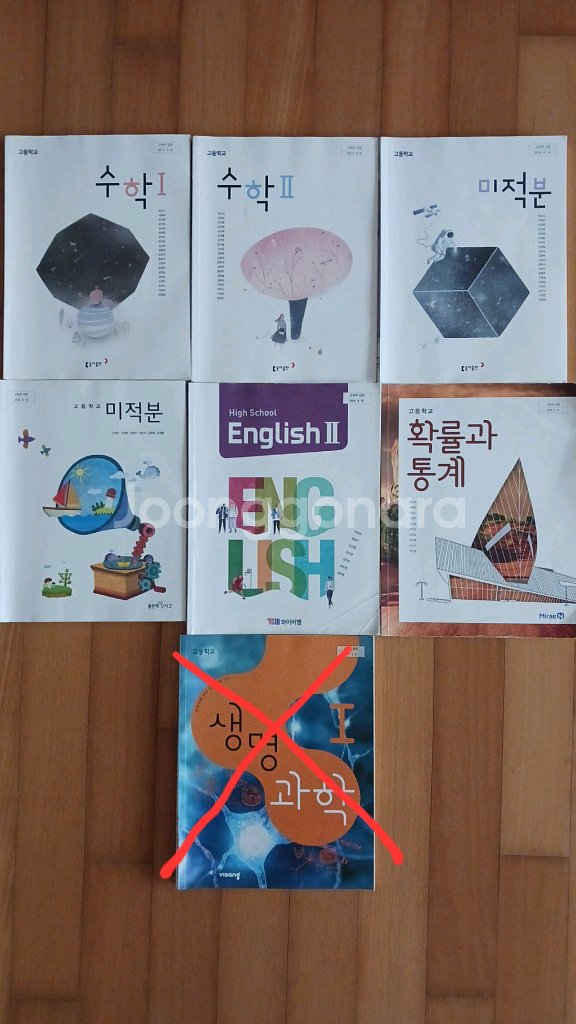 현재 고3 저희딸이 사용 안 한 책도 있고 사용 한 책도 있어요 사진을 더 원하실 경우 전송해드릴수 있어요 모두 2015 교육 과정이예요 1.국어 :창비,앞쪽 필기 없고 뒤쪽 필기 있음 2.문학 :비상,필기 조금 있음 3.언어와 매체:지학사, 앞쪽에 필기 조금 있음 4.수학1 :동아출판,필기있음,상태양호 5.수학2 :동아출판,필기있음,상태양호 6.미적분 :동아출판,필기조금있음,상태양호 7.미적분 :동아출판,필기조금있음,상태양호 8.한국사 :금성출판사,필기조금있음 9.일본어 :천재교육,필기조금있음,CD는 미개봉 새것 10.체육 :동아출판,새책 11.음악 :미래엔,새책 12.사회문화 :지학사,새책수준 13.정보 :삼양미디어,새책수준 14.화학2 :비상, 새책수준 15.영어2 :(주)와이비엠,필기조금있음 16.확률과통계 : 미래엔, 필기있음 17.과학탐구실험 :천재교육, 새책 직거래 각각 3천원입니다 택배일 경우 택배비 선불 있어요 반품은 사양합니다