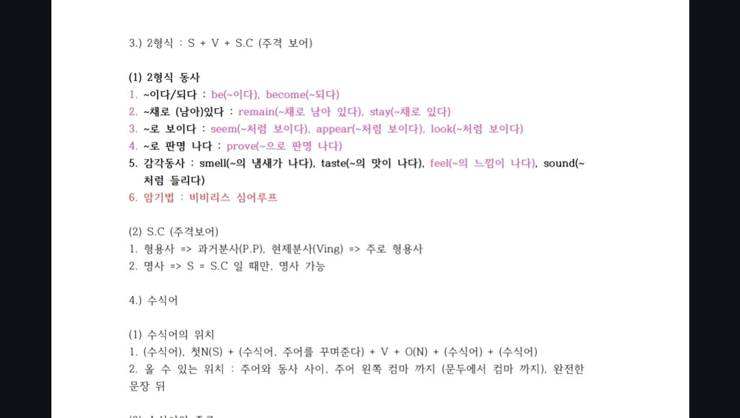 문법 요약문은 품사, 시제, 태, 가정법, 관계사 등 시험에 자주 출제되는 핵심 문법만 깔끔하게 정리했고, 바로 문제에 적용할 수 있도록 예문까지 포함했습니다. 단어장은 빈출 어휘 위주로 구성했으며, 실전 난이도 문제와 자세한 해설도 함께 드립니다. 단기간에 점수 올리고 싶은 분들께 추천드립니다. 편하게 문의 주세요 🙂