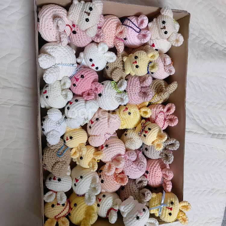 직접 뜨개질로 뜬 토끼 강아지인형입니다 단체나 학원 어린이집 어린이날 선물용으로 좋습니다 총 50개 일괄로 판매합니다 네고 안됩니다 반택 안됩니다