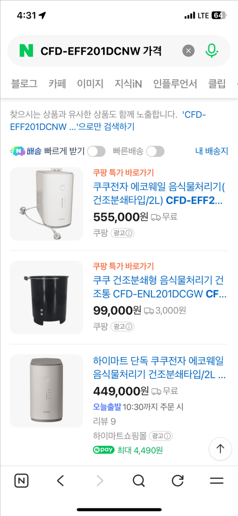 개인정보(거래정보)를 주고받는 행위는 사기에 노출될 수 있으므로 즉시 중고나라로 신고해 주세요쿠쿠 에코웨일 음식물처리기 CFD-EFF201DCNW 미개봉 새제품입니다 직거래는 대전 그외지역은 택배거래가능합니다