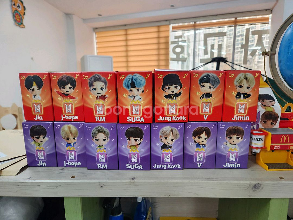 개인정보(거래정보)를 주고받는 행위는 사기에 노출될 수 있으므로 즉시 중고나라로 신고해 주세요미개봉 맥도날드 TinyTAN 피규어 풀세트입니다. 박스 상태 깔끔하며, 멤버별로 소장 가치 있습니다. 아미분들 소장용으로 추천드려요! 문의 없으시면 바로 안전결제해주시면 됩니다!