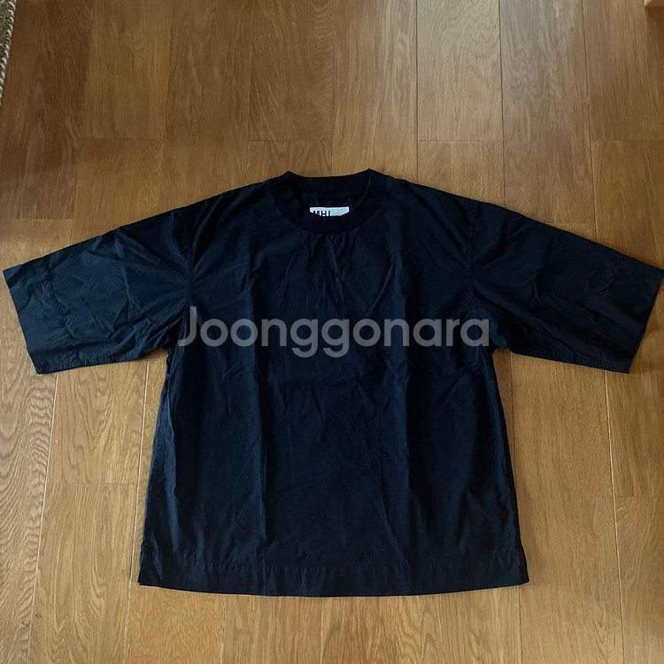 MHL 오버사이즈 코튼 저지 티셔츠 블랙 티셔츠입니다 목 부분은 코튼 소재 리브고 그 외의 부분은 셔츠소재로 심플하면서 고급스러운 티셔츠에요 1회 착용하고 세탁한 후에 보관해왔습니다 하자 없이 상태 좋아요 가슴단면 52 총장 67
