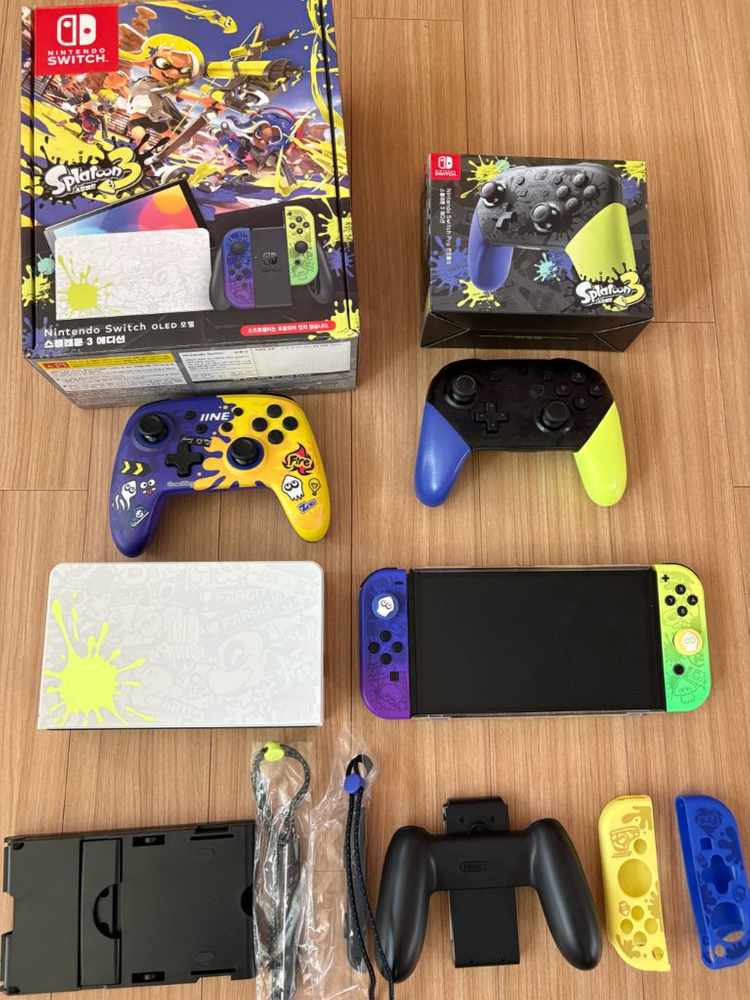 1년반 정도 됐지만 젤다나 드퀘 정도 손님오면 마리오카트 조금 하는정도여서 실사용 별로 안됩니다. 거의 독에 껴서 tv 로 사용했기에 기스도 없어요. 사진 보시면 아시겠지만 ㅋㅍ 입니다 버전은 정식,커피 둘다 최신으로 올려놨고 게임도 요즘 나오는것들 깔아놨어요 (어느정도 아시는 분이 구매하셔야 사용하기 편해요) 프로콘 1개도 스플레툰에디션 정품이고요 조이트론 거치대, 기기케이스 껴져있습니다. 연락주세요.