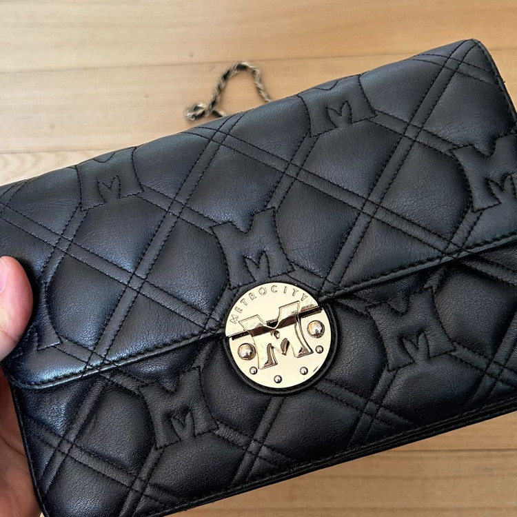 METROCITY 메트로시티 퀼팅 미니 체인 크로스백 (M41MQ367Z) 출고가 : 379,000원 품번 : M41MQ367Z 소재 : 소가죽 실측(cm) : 가로21.5 세로14 폭6 (실측 재는위치에 따라 1-2센치 차이날수있으니 대략적인 크기만 참고해주세요) 중앙수납 1 오픈포켓 1 지퍼포켓 1칸 카드 6칸 지폐1칸 - 구성 : 가방 + 더스트백 + 보증서 - 상태 깨끗하지만 앞쪽 장식에 살짝 까임있습니다(사진 참고)