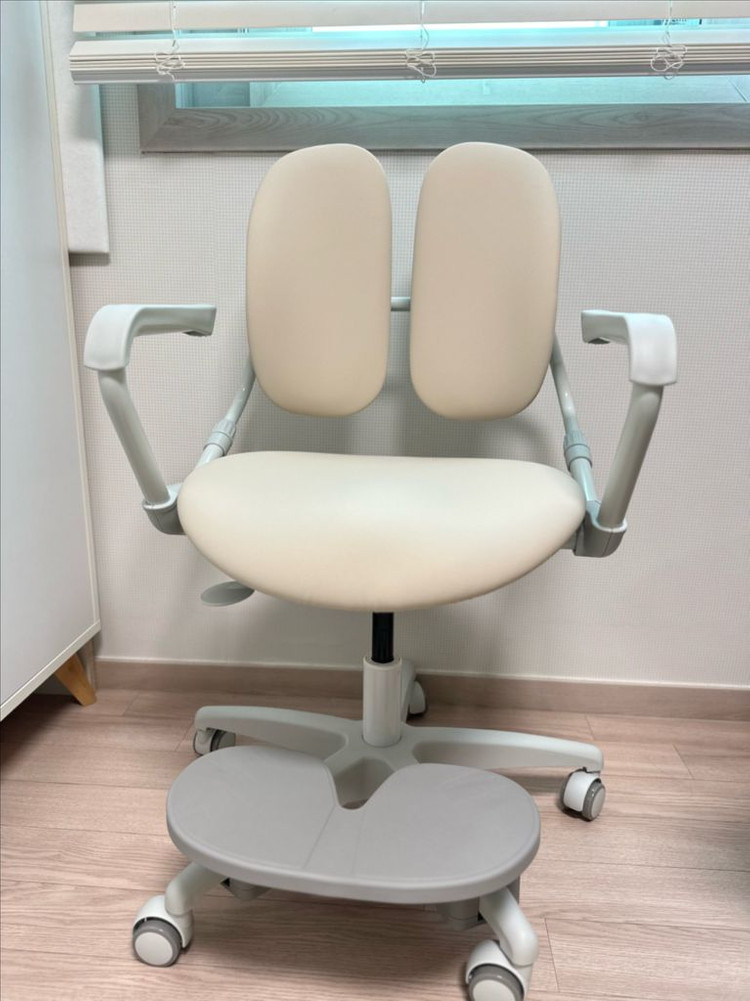 <조립새상품> <택배불가 직접 오셔야해요~> 듀오백 밀키에코 초등학생 의자입니다 아이보리 색상이고요, 바른 자세를 잡아주는 의자입니다 - 듀오백은 바른 자세를 위한 최적의 솔루션을 제공합니다 - 인체공학적 디자인으로 편안함을 더했습니다 발받침과 스탑캐스터 포함입니다