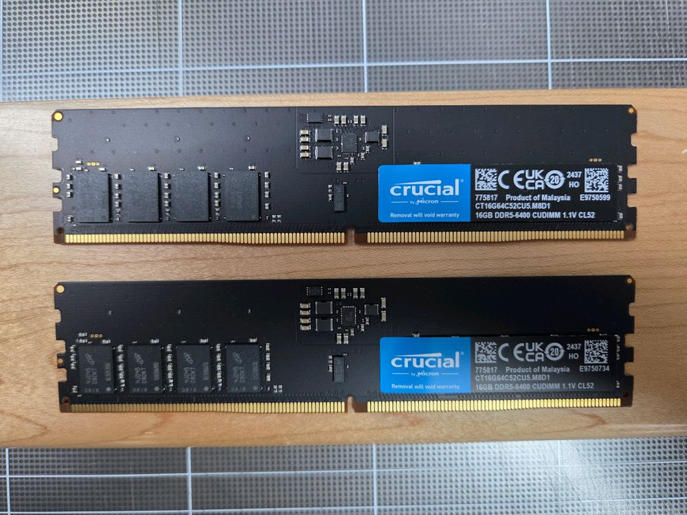 마이크론 Crucial DDR5-6400 CL52 (16GB×2) 데스크탑 메모리 판매합니다. 아스크텍 국내정품이며 불량없고 실사용 한달도 안된 새제품급입니다. 고성능 게이밍이나 작업용으로 좋습니다. (16기가 2개 가격입니다.) 직거래장소는 청주 인근은 모두 가능하고 그외 지역은 택배거래가능합니다.