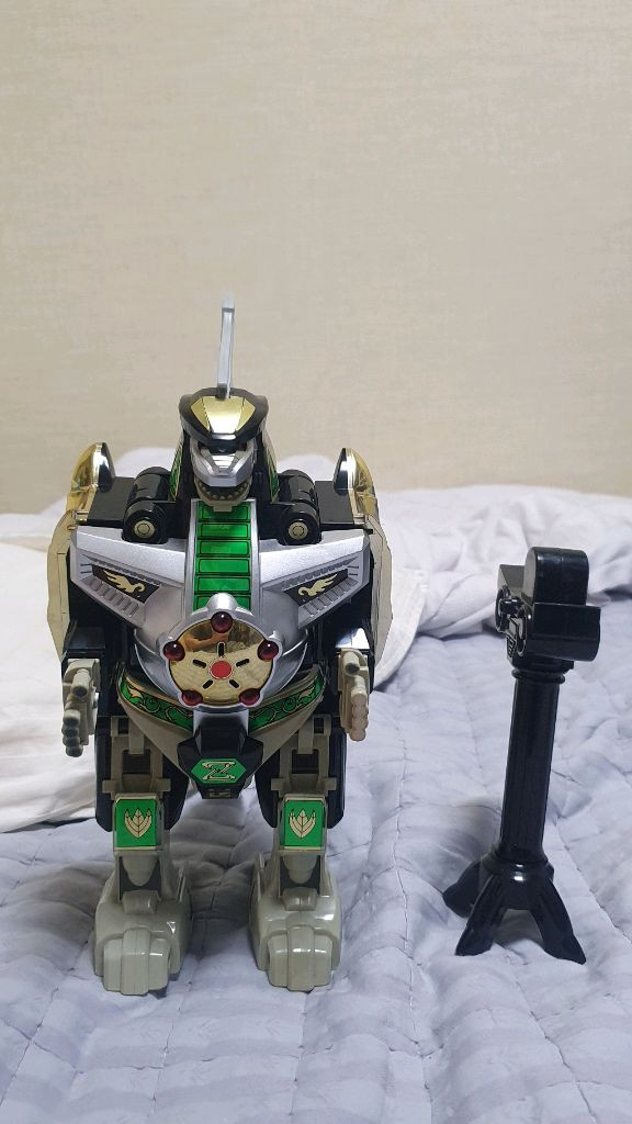 아기 때문에 소장품들 하나하나 판매중입니다. 쥬레인저 드래곤시저 DX 반다이정품이고 1992년에 발매된겁니다. 세월의 흔적이 보이지만 잘 보관되어와서 팔다리 관절들 헐거워짐 없고 파손 없습니다.꼬리끝 작은파츠 말고는 다 있다고 생각됩니다. 얼굴 도색도 까짐 없고 가슴에 빨간불 5개 다 들어옵니다. 스티커도 손끝 정도 말고는 거의다 붙어있고 어깨쪽은 일부 접착력 감소하며 떨어졌는데 사시는분이 붙이실수 있게 안건드리겠습니다. 구매하시면 안전하게 포장해서 보내겠습니다.