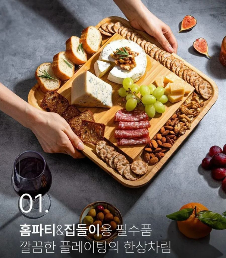 새상품 정가 3.9 치즈플레이팅 커트러리 치즈보드 플레이트 샤퀴테리보드 원목접시 우드 서빙 플레이팅도마 새상품입니다 홈파티나 집들이에 유용한 커트러리 치즈 보드 세트입니다. - 100% 대나무 소재 나무 재질로 만들어 고급스럽습니다 - 술 마실 때 치즈 과일 과자 등 플레이팅 시 멋있게 셋팅 할 수 있습니다 - 전용 나이프와 포크 커트러리 4종이 포함되어 있습니다 - 집들이 홈파티 캠핑 플레이팅에 활용하기 좋습니다 - 홈파티 집들이 선물로도 추천드립니다 - 사이즈 가로 33cm x 가로 33cm x 높이 3.6cm - 사진의 치즈 과자 등 간식류는 포함되어있지 않습니다 - 사용중 나무가 지닌 자연오일 성분이 표면에 배어나올 수 있으나, 이는 원목의 특성으로 인체에 무해하며, 몇차례 사용 후 자연스럽게 줄어듭니다 자세한 사항은 판매처 홈페이지 확인해주세요 https://kko.to/f8gezXpJaw 중고거래 특성상 환불은 불가능하며, 일반택배, 편의점 반값택배 모두 가능합니다
