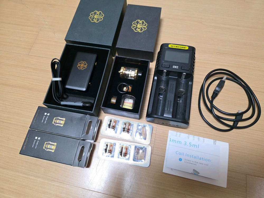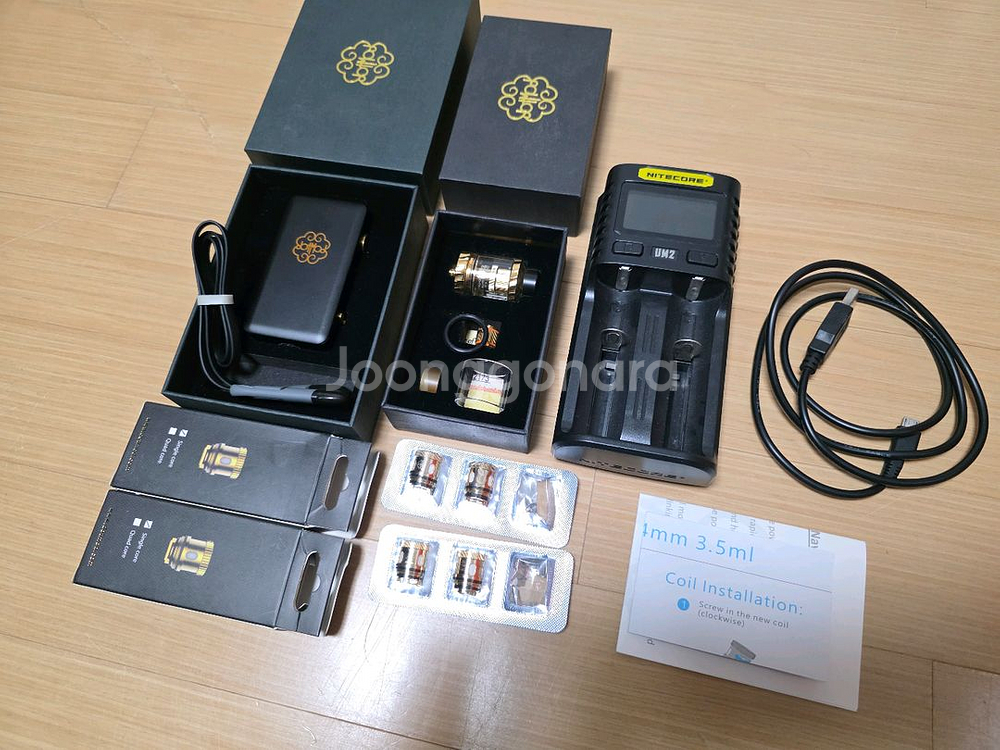 1. 닷박스 75W (정품가 13만) 2. 탱크 24mm 3.5ml (정품가 11만) 3. 코일 4개 0.2옴 (정품가 3만) 4. NITECORE UM2 충전기 (정품가 4만) 5. 삼성SDI 18650 (정품가 0.6만) 잠깐 쓰고 모셔놔서 상태 A급입니다. 일괄로 판매합니다.