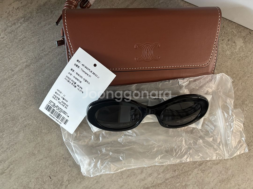 이번 달에 선물 받은 셀린느 트리옹프 01 선글라스입니다. 롯데월드타워 매장에서 수령한 제품이고, 사진 보시다시피 기프트 리시트(구매 증빙) 포함된 정품 확실한 풀박스 새제품이에요. (2026.03 제조) 시착만 해본 새상품인데, 저한테는 너무 안 어울려서 아쉽지만 내놓습니다. ㅠㅠ • 구성: 선글라스 본품, 케이스, 클리너, 박스, 쇼핑백, 기프트 리시피(영수증) 전 구성품 포함 * 고가 제품이라 가급적 직거래 선호합니다(전북전주)