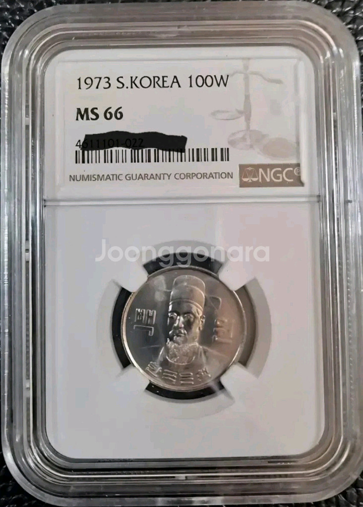 1973년 발행된 100원 은화입니다. NGC 정품 보증서가 함께 있어 상태가 매우 좋아요. 컬렉터들에게 인기 있는 빈티지 동전입니다. 년도 1973년 주화 100원 등급 NGC MS 66 고등급 상태 희소성 상급 잔존량 상급 특이 사항 없으면 안전결재 하시면됩니다